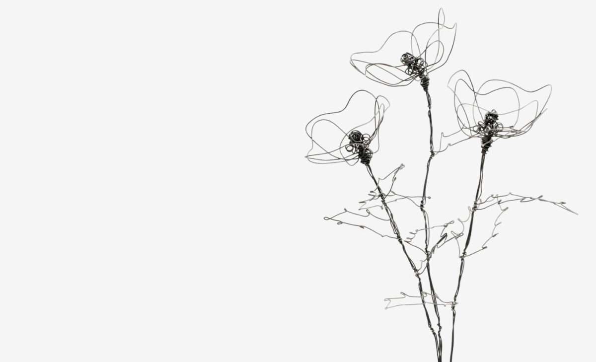 Als Abbild der Natur, werden mit viel Liebe zum Detail aus Draht erstellte Blumen und andere Objekte zu dekorativen Kunstobjekten.