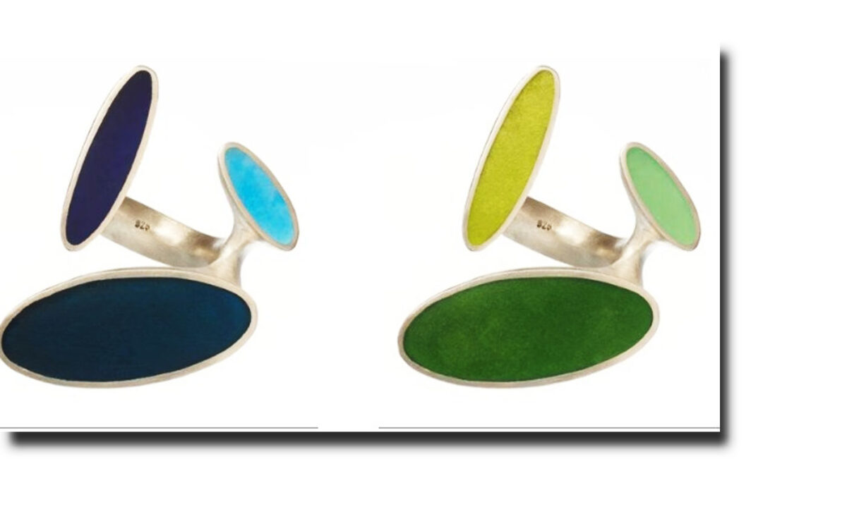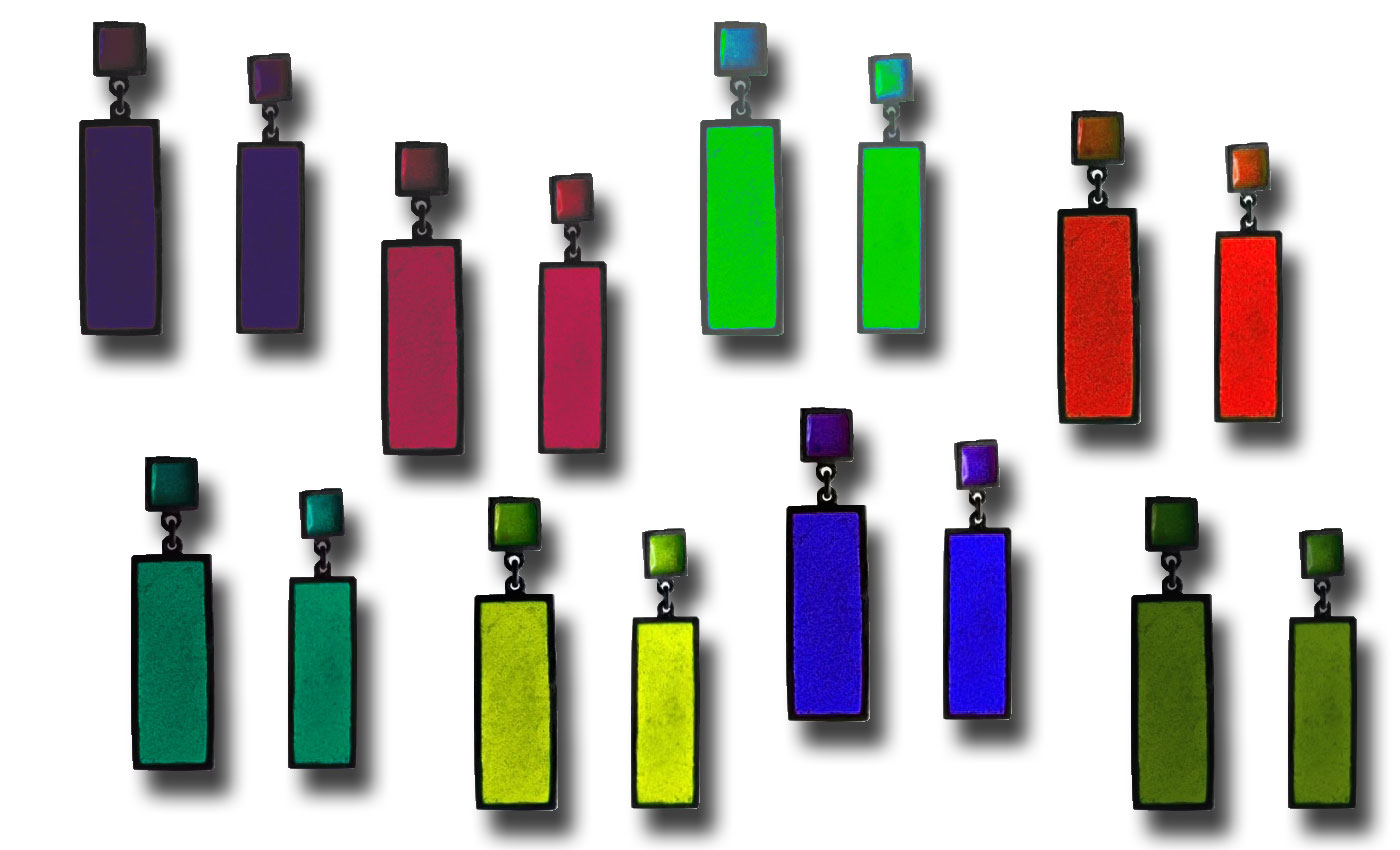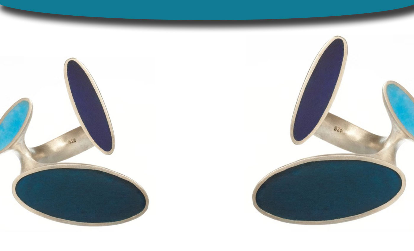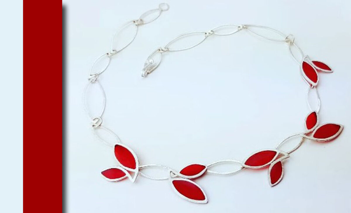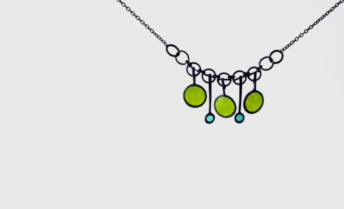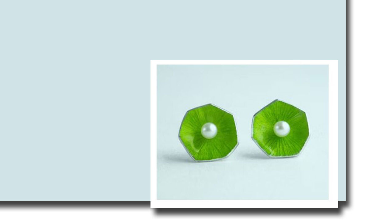 arbeitet ihren Schmuck in der besonderen Technik des Emaille Plique, wo das hauchzarte Glas durchscheinend in einen Rahmen aus Silber oder Gold gebrannt wird. Es verwandelt das einfallende Licht in brillante und leuchtende Farbtöne. Diese Farben, gefasst in spielerisch fein geschmiedetes Silber und Gold, machen den Zauber ihrer Werke aus.